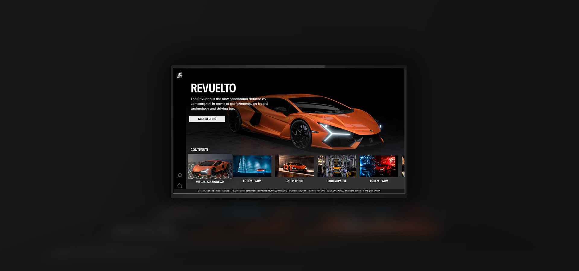 A Automobili Lamborghini lançou a Lamborghini TV, uma aplicação inovadora para Smart TVs, projetada para proporcionar uma experiência imersiva em ecrã completo. Os utilizadores podem explorar conteúdos exclusivos, como análises detalhadas de modelos, eventos de Motorsport, lifestyle, entrevistas e podcasts.